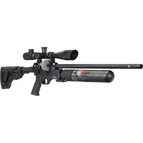 The Hatsan Factor RC .25 PCP Side Lever is a high-powered air rifle featuring a durable black finish and comes with two magazines for extended shooting sessions. Perfect for hunting or target shooting.